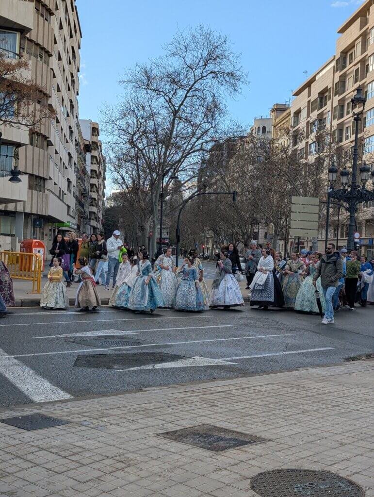 The clothing is incredible. Traditional Valencian dress features elaborate silk gowns, intricate jewelry, and complex hairstyles. Everything is hand-made and the outfits cost thousands of euros.