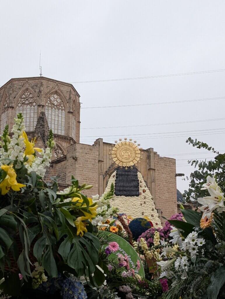 There, they offer the flowers to create a massive floral tapestry covering a wooden structure of the Mare de Déu dels Desamparats (Valencia’s patron saint).
